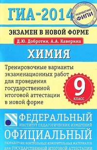 | Полное название книги | Дмитрий Добротин, Аделаида Каверина ГИА-2014. Химия. 9 класс. Экзамен в новой форме. Тренировочные варианты для проведения ГИА |