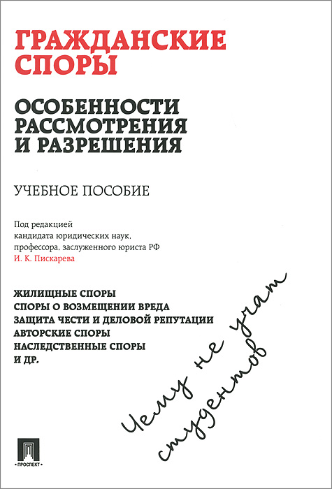 | Полное название книги | И. К. Пискарева Гражданские споры: особенности рассмотрения и разрешения. Чему не учат студентов |