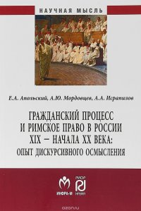 | Полное название книги | Е. А. Апольский, А. Ю. Мордовцев, А. А. Исрапилов Гражданский процесс и римское право в России XIX - начала ХХ века. Опыт дискурсивного осмысления |