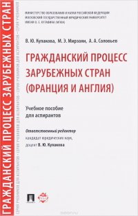 | Полное название книги | А. А. Соловьев, В. Ю. Кулакова, М. Э. Мирзоян Гражданский процесс зарубежных стран (Франция и Англия). Учебное пособие |