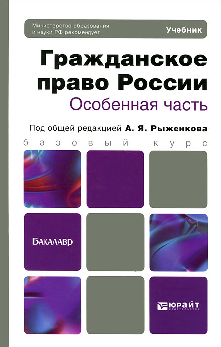 | Полное название книги | С. А. Чаркин, А. П. Анисимов, А. Я. Рыженков ГРАЖДАНСКОЕ ПРАВО РОССИИ. ОСОБЕННАЯ ЧАСТЬ. Учебник для бакалавров |