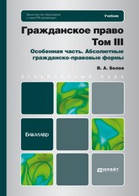 | Полное название книги | В. А. Белов ГРАЖДАНСКОЕ ПРАВО. Т. 3. ОСОБЕННАЯ ЧАСТЬ. АБСОЛЮТНЫЕ ГРАЖДАНСКО-ПРАВОВЫЕ ФОРМЫ. Учебник для бакалавров |