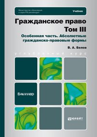 | Полное название книги | В. А. Белов Гражданское право. Том 3. Особенная часть. Абсолютные гражданско-правовые формы |