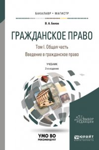 | Полное название книги | В. А. Белов Гражданское право. Учебник для бакалавриата и магистратуры. В 4-х томах. Том 1. Общая часть. Введение в гражданское право |