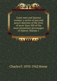 | Полное название книги | Charles F. 1870-1942 Horne Great men and famous women: a series of pen and pencil sketches of the lives of more than 200 of the most prominent personages in history Volume 7 |