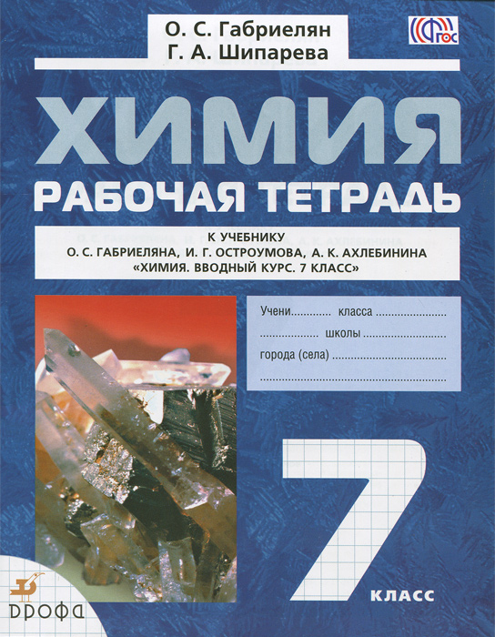 | Полное название книги | О. С. Габриелян, Г. А. Шипарева Химия. 7 класс. Рабочая тетрадь к учебному пособию О. С. Габриеляна, И. Г. Остроумова, А. К. Ахлебин |