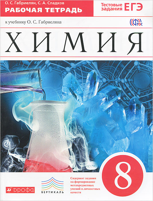 | Полное название книги | С. А. Сладков, О. С. Габриелян Химия. 8 класс. Рабочая тетрадь |
