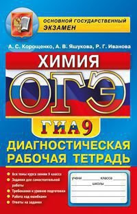 | Полное название книги | А. В. Яшукова, Р. Г. Иванова, А. С. Корощенко Химия. 9 класс. Диагнотическая рабочая тетрадь для подготовки к экзамену |