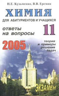 В данном пособии даются ответы на вопросы по химии, предлагаемые для школьных выпускных экзаменов за 11 класс, а также да вступительных экзаменов в вузы в 2005 году и рекомендованные Министерством образования РФ. Каждую тему сопровождают базовые задачи с решениями, овладение методами которых исчерпывай проблемы успешной сдачи экзаменов по химии в любое высшее учебное заведение.