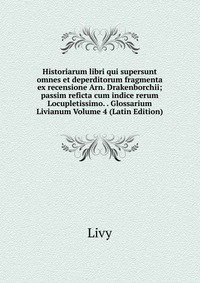 | Полное название книги | Livy Historiarum libri qui supersunt omnes et deperditorum fragmenta ex recensione Arn. Drakenborchii; passim reficta cum indice rerum Locupletissimo. . Glossarium Livianum Volume 4 (Latin Edition |