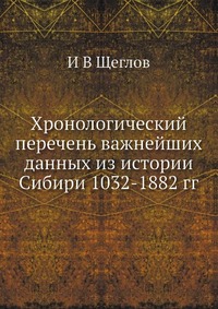 | Полное название книги | И. В. Щеглов Хронологический перечень важнейших данных из истории Сибири 1032-1882 гг |