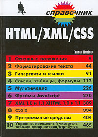 В книге приведены справочные сведения по языку разметки гипертекста HTML (версия 4.0/4.01). Подробно описаны основные понятия HTML-технологии, синтаксис и семантика языка, набор дескрипторов и их атрибуты. Изложение структурировано с точки зрения решаемых задач и богато иллюстрируется примерами. Описаны языки XML (версия 1.0 и 1.1) и XHTML (версия 1.0 и 1.1). Книга также содержит достаточные для практического использования сведения по каскадным таблицам стилей CSS (версия 2.0) с необходимыми примерами применения. Это и многое другое вы найдете в книге HTML / XML / CSS (Гюнтер Штайнер)