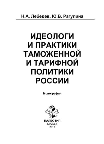 | Полное название книги | Н. А. Лебедев, Юлия Вячеславовна Рагулина Идеологи и практики таможенной и тарифной политики России |
