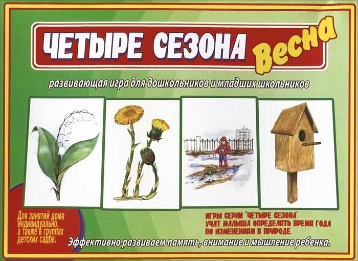 Развивающая игра для дошкольников и младших школьников. Для занятий дома индивидуально, а также в группах детских садов. Это и многое другое вы найдете в книге Игра "Четыре сезона. Весна" Д-487 (а)