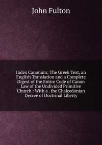 | Полное название книги | John Fulton Index Canonum: The Greek Text, an English Translation and a Complete Digest of the Entire Code of Canon Law of the Undivided Primitive Church : With a . the Chalcedonian Decree of Doctrinal L |