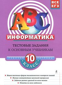 инструкция по выполнению заданий разных типов; самостоятельные работы; задания разных уровней по всем темам 10-го класса; ответы ко всем заданиям. Это и многое другое вы найдете в книге Информатика. 10 класс. Тестовые задания к основным учебникам. Рабочая тетрадь (Е. М. Зорина, М. В. Зорин)| Полное название книги | М. В. Зорин, Е. М. Зорина Информатика. 10 класс. Тестовые задания к основным учебникам. Рабочая тетрадь |
