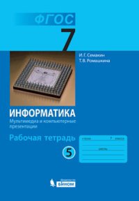 | Полное название книги | И. Г. Семакин, Т. В. Ромашкина Информатика. 7 класс. Рабочая тетрадь. В 5 частях. Часть 5. Мультимедиа и компьютерные презентации |