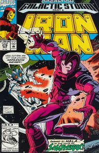 "Operation: Galactic Storm, Pt. 6 of 19: Decisions in a Vacuum" cont. from Avengers no. 345 cont. to Thor no. 445 cover: "Onward to Hala ... in the Face of Shatterax!"