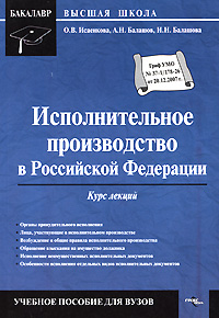 | Полное название книги | И. Н. Балашова, О. В .Исаенкова, А. Н. Балашов Исполнительное производство в Российской Федерации. Курс лекций |