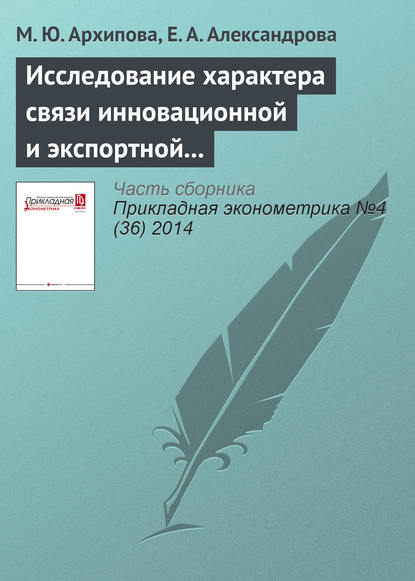 На сайте представлено только описание и выходные данные книги «Исследование характера связи инновационной и экспортной активности российских предприятий Марина Юрьевна Архипова, Елена Андреевна Александрова». Сайт не является распространителем книги. Сайт не предоставляет возможности купить, читать онлайн или скачать бесплатно книгу «Исследование характера связи инновационной и экспортной активности российских предприятий Марина Юрьевна Архипова, Елена Андреевна Александрова». Сайт предназначен для лиц старше 18 лет. Если вам не исполнилось 18 лет - незамедлительно покиньте сайт. Оставаясь на сайте вы подтвердаете, что вам исполнилось 18 лет.