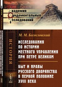 | Полное название книги | М. М. Богословский Исследования по истории местного управления при Петре Великом. Быт и нравы русского дворянства в первой половине XVIII века |