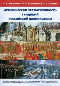 | Полное название книги | Л. П. Колодникова, Т. С. Бушуева, С. А. Мельников Историческая преемственность традиций российской цивилизации: знаменательные даты, исследования и новые документы |
