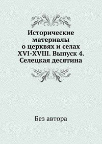 | Полное название книги | без автора Исторические материалы о церквях и селах XVI-XVIII. Выпуск 4. Селецкая десятина |
