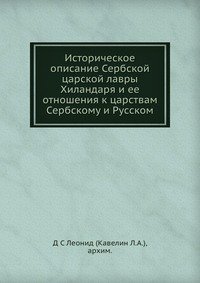 | Полное название книги | Д С Леонид (Кавелин Л.А.), архим. Историческое описание Сербской царской лавры Хиландаря и ее отношения к царствам Сербскому и Русском |