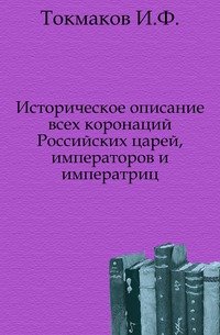 | Полное название книги | И. Ф. Токмаков Историческое описание всех коронаций Российских царей, императоров и императриц |