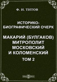 | Полное название книги | Ф. И. Титов Историко- биографический очерк. Макарий (Булгаков) митрополит Московский и Коломенский |