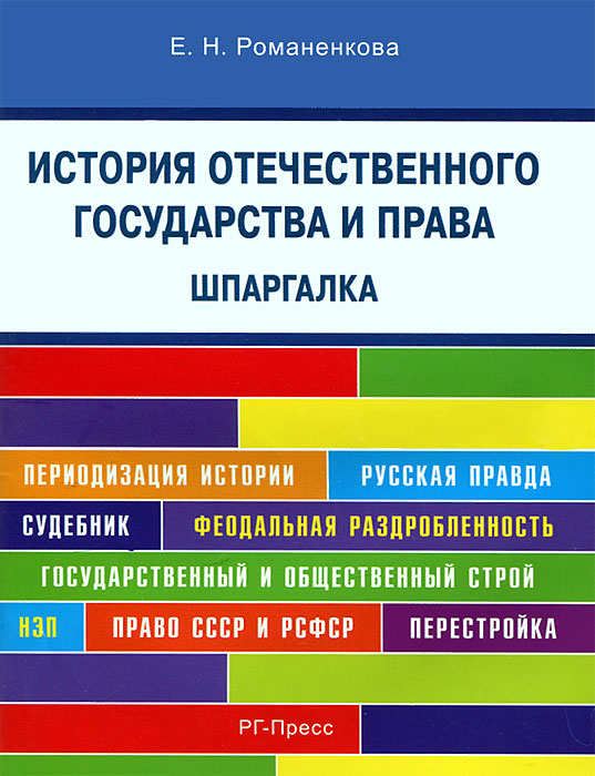 | Полное название книги | Е. Н. Романенкова История отечественного государства и права. Шпаргалка |