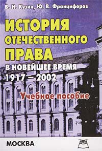 | Полное название книги | В. Н. Кузин, Ю. В. Францифоров История отечественного права в новейшее время (1917 - 2002 гг.). Учебное пособие |