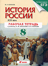 | Полное название книги | В. А. Клоков История России. XIX век. 8 класс. Рабочая тетрадь к учебнику А. Ф. Киселева, В. П. Попова |