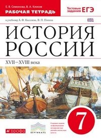 | Полное название книги | Е. В. Симонова, В. А. Клоков История России. XVII-XVIII века. 7 класс. Рабочая тетрадь с контурными картами к учебнику А. Ф. Киселева, В. П. Попова |