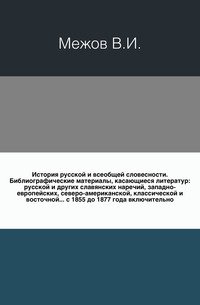 Библиографические материалы, касающиеся литератур: русской и других славянских наречий, западно-европейских, северо-американской, классической и восточной, с 1855 до 1877 года включительно. Воспроизведено в оригинальной авторской орфографии издания 1872 года. Это и многое другое вы найдете в книге История русской и всеобщей словесности (В. И. Межов)