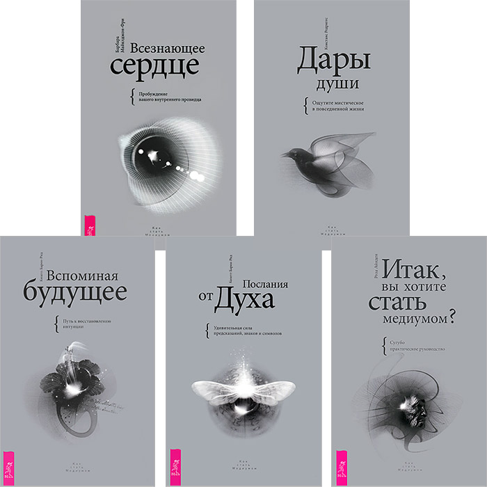 | Полное название книги | Коллет Барон-Рид, Констанс Родригес, Роза Айнден, Барбара Майклджон-Фри Итак, вы хотите стать медиумом? Послания от Духа. Всезнающее сердце. Дары души. Вспоминая будущее (комплект из 5 книг) |
