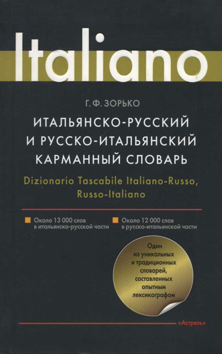 | Полное название книги | Г. Ф. Зорько Итальянско-русский и русско-итальянский карманный словарь / Dizionario Tascabile Italiano-Russo, Russo-Italiano |
