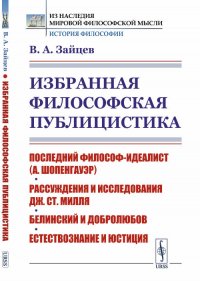 | Полное название книги | В. А. Зайцев Избранная философская публицистика. Последний философ-идеалист (А.Шопенгауэр). Рассуждения и исследования Дж.Ст.Милля. Белинский и Добролюбов. Естествознание и юстиция |