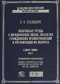 | Полное название книги | В. Б. Ельяшевич Избранные труды о юридических лицах, объектах гражданских правоотношений и организации их оборота. В 2 томах. Том 1 |