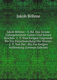 | Полное название книги | Jakob Bohme Jakob Bohme: -3. Bd. Das Grosse Liebegeheimnis Gottes Und Seines Reiches: 1. T. Vom Ewigen Ungrunde Bis Zur Fleischwerdung Des Wortes. 2. T. Von Der . Bis Zur Ewigen Vollendung (German Editio |
