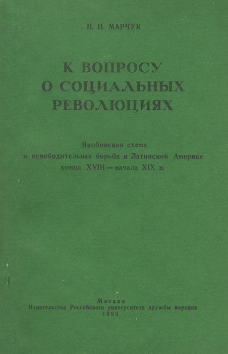 | Полное название книги | Н. Н. Марчук К вопросу о социальных революциях. Якобинская схема и освободительная борьба в Латинской Америке конца XVIII - начала XIX в |