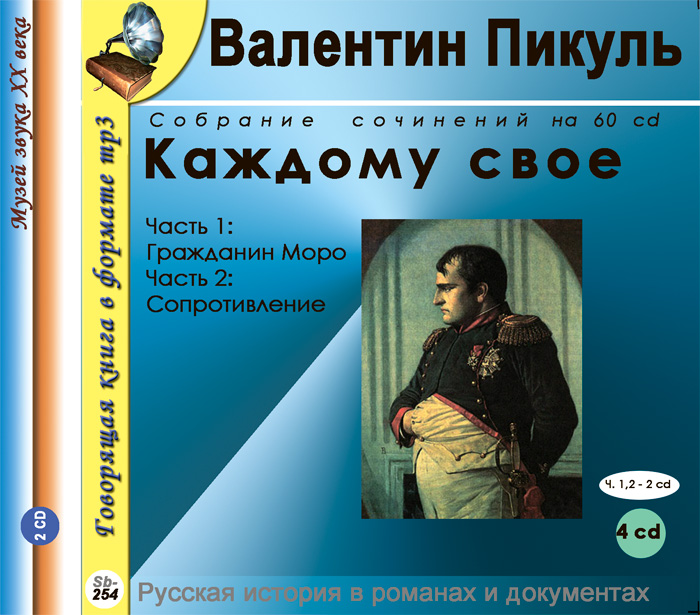 | Полное название книги | Валентин Пикуль Каждому свое. Роман в 3 частях. Часть 1. Гражданин Моро. Часть 2. Сопротивление |