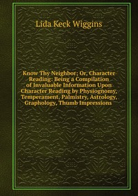 | Полное название книги | Lida Keck Wiggins Know Thy Neighbor; Or, Character Reading: Being a Compilation of Invaluable Information Upon Character Reading by Physiognomy, Temperament, Palmistry, Astrology, Graphology, Thumb Impressions |