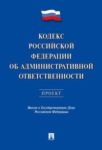 Проект Кодекса об административной ответственности подготовлен рабочей группой под руководством депутата Государственной Думы Федерального Собрания Российской Федерации А.А.Агеева 30 октября 2015 г. Проект нового Кодекса разработан в связи с необходимостью принятия новой редакции федерального кодифицированного закона, систематизирующего материально-правовые и процессуально-правовые нормы об административной ответственности физических и юридических лиц и представляет собой принципиально новую редакцию действующего Кодекса Российской Федерации об административных правонарушениях. Это и многое другое вы найдете в книге Кодекс Российской Федерации об административной ответственности. Проект (П. И. Кононов, В. В. Лихарев, С. А. Старостин, В. А. Юсупов)