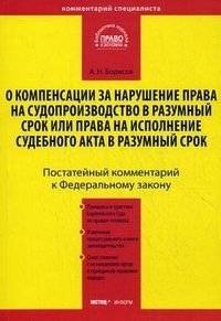 | Полное название книги | А. Н. Борисов Комментарий к Федеральному закону "О компенсации за нарушение права на судопроизводство в разумный срок или права на исполнение судебного акта в разумный срок" |