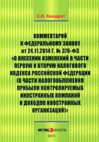 | Полное название книги | Е. Н. Кондрат Комментарий к Федеральному закону "О внесении изменений в части первую и вторую Налогового кодекса Российской Федерации" |