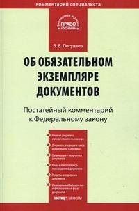 | Полное название книги | В. В. Погуляев Комментарий к Федеральному закону "Об обязательном экземпляре документов" (постатейный) |