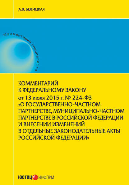 | Полное название книги | Анна Викторовна Белицкая Комментарий к Федеральному закону от 13 июля 2015 г. № 224-ФЗ «О государственно-частном партнерстве, муниципально-частном партнерстве в Российской Федерации и внесении изменений в отдельные законодательные акты Российской Федерации» |
