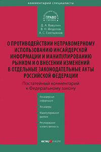 | Полное название книги | А. С. Емельянов, В. Н. Федотов, Д. А. Вавулин Комментарий к ФЗ "О противодействии неправомерному использованию инсайдерской информации и манипулированию рынком и о внесении изменений в отдельные законодательные акты Российской Федер |