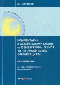 | Полное название книги | А. Н. Борисов Комментарий к ФЗ от 12 января 1996 г. № 7-ФЗ "О некоммерческих организациях" (постатейный) |